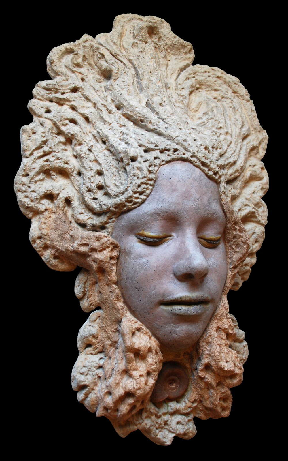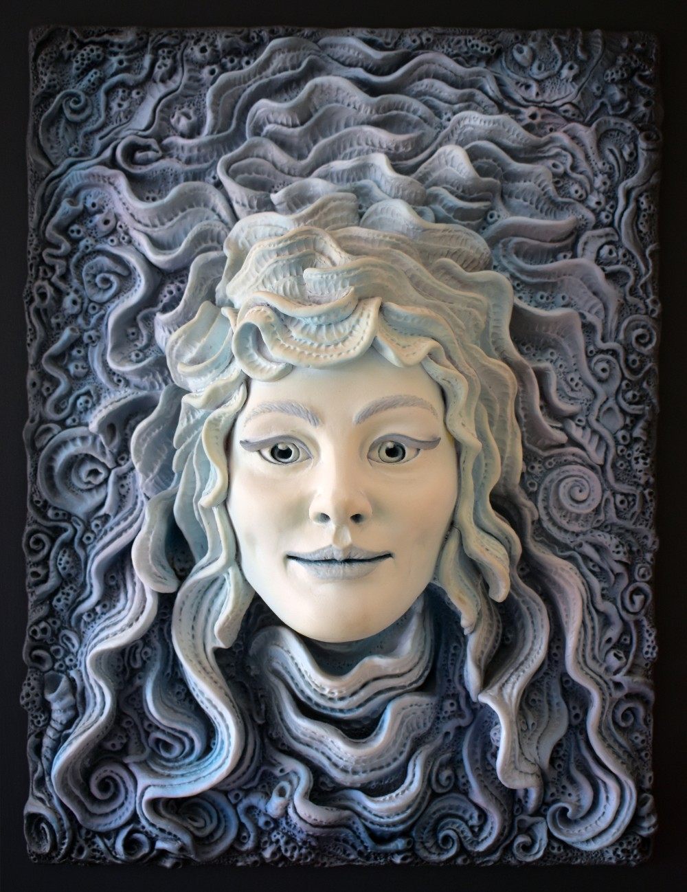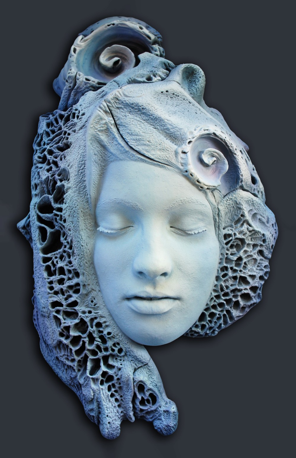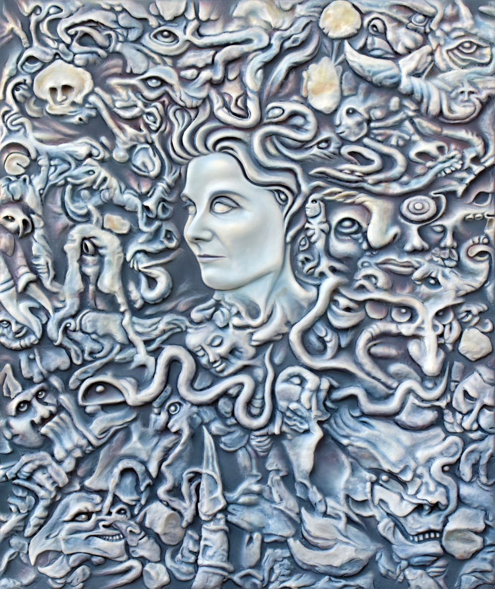 Sculpture Clay and Cast Concrete LAGUZ 2004Painted Polymer Clay on Wood Panel22" x 26" About PELE 2006Painted Lifecast in Concrete and Sculpted Polymer Clay on Wood Base13" x 21". About VIKE 2005Painted Portrait and Sculpted Polymer Clay on Wood Panel22" x 26". About SEAFORMS 2006Painted Polymer Clay Tiles on Wood Panel35" x 35" KNOW BY NOW 2005Painted Polymer Clay on Wood Panel22" x 26" LAND OF MEDUSA 1997Painted Polymer Clay on Wood Panel26" x 22" About LAVA 2009Painted Polymer Clay on Wood Panel26" x 22" BIOMORPHIC FOSSIL 2022Painted Polymer Clay on Wood Panel18" x 9" ROTTEN 2004Painted Polymer Clay on Wood Panel26" x 22" MALAMA HEART SIGN 2022Cast Concrete 7" x 7" About ISOBEL 2001Painted Polymer Clay on Wood Base10" x 12" HELENA 2008Lifecast and Wet Carved Concrete with Embedded Snail Shell 18" x 12" SEA MAIDEN 2012Painted Polymer Clay Relief on Wood Panel Under Blacklight 18" x 12" SEA MAIDEN 2012Painted Polymer Clay Relief on Wood Panel Under Natural lighting 18" x 12" CATHERINE MAUI 2008Painted Lifecast in Concrete and Sculpted Polymer Clay on Wood Base18" x 12"